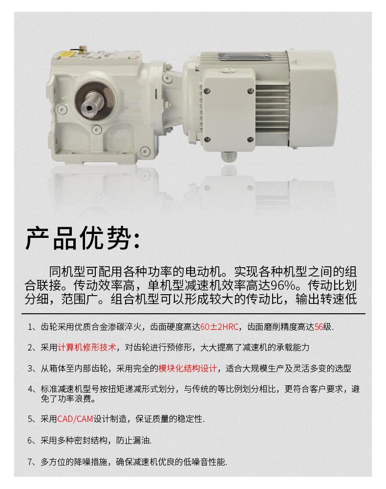 6、該減速機可配置各種類電機,形成了機電一體化,完全保證了產品使用質量特征。