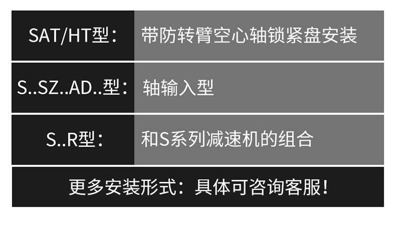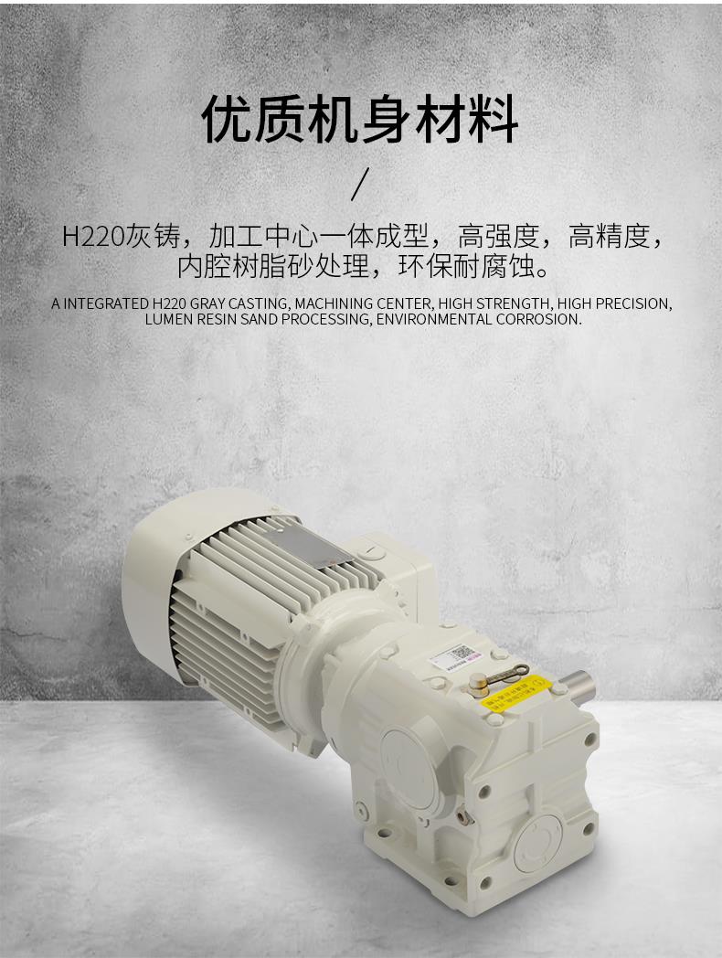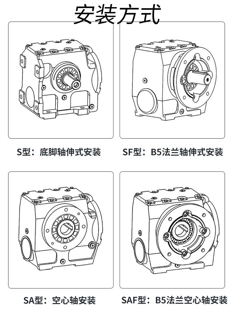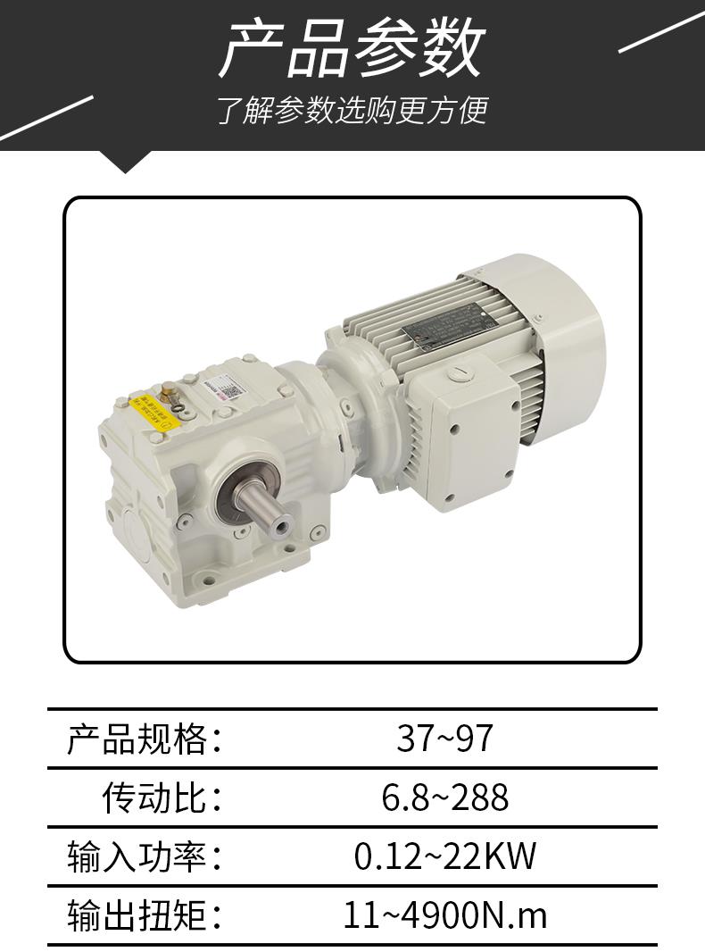 1、S系列斜齒輪蝸桿減速機具有很高的科技含量,有斜齒輪與蝸輪蝸桿結合一 體傳動,提高該機力矩與效率。該系列產品規格齊全,轉速范圍廣,通用性好,適應各種安裝方式,性能安全可靠壽命長,實施了國際標準要求。